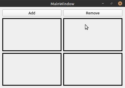 Imagine we want to add multiple widgets in QGridLayout dynamically but also remove widgets on the fly.